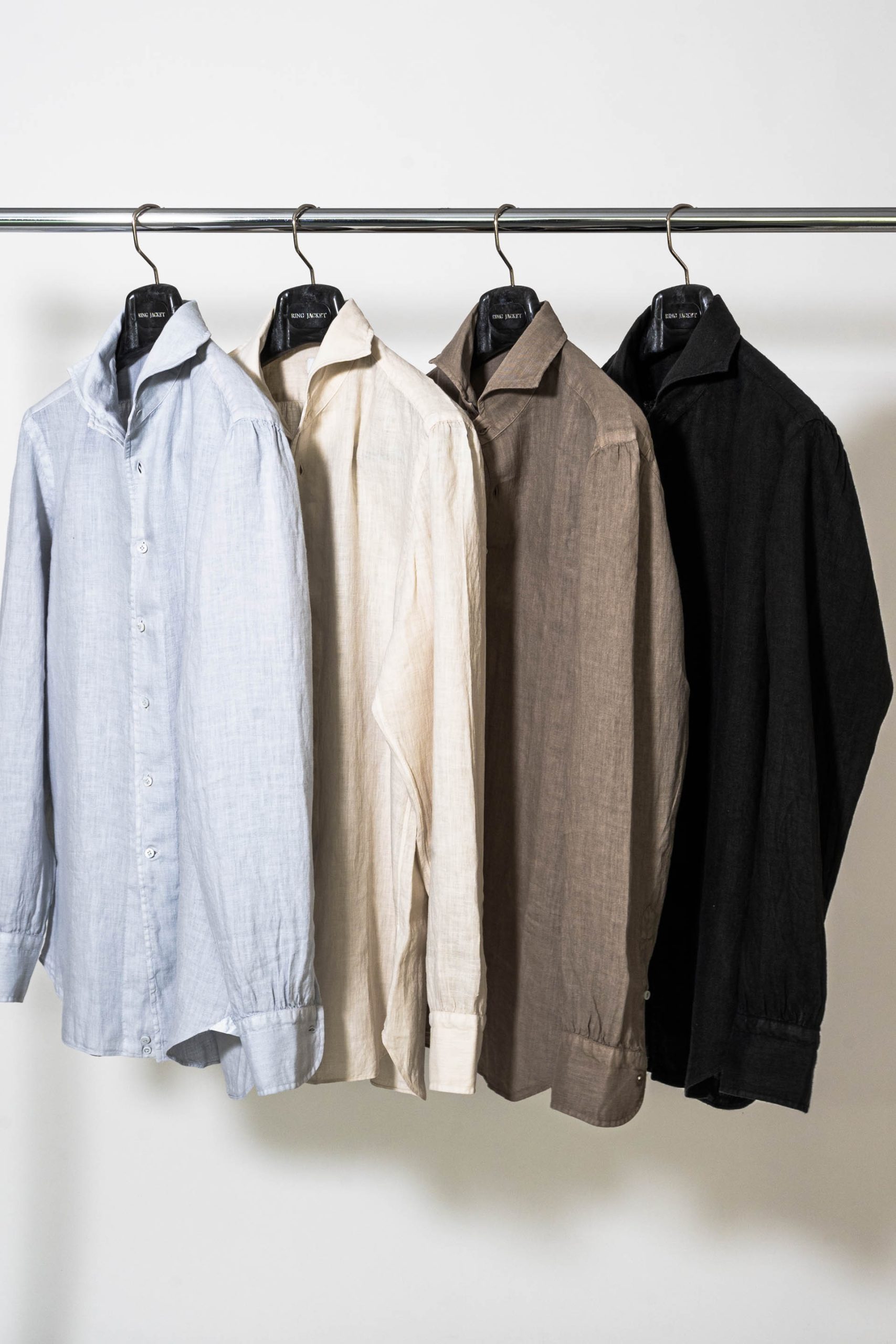 ITEM : SHIRT / RING JACKET Napoli PRODUCT : 59104S12C(LT GREY) 59104S12G(BEIGE) 59104S12F(BROWN) 59104S12Y(BLACK) PRICE : 51,700- YEN (tax included) MATERIAL : LINEN 100% SIZE : 1 . 2 . 3 . 4